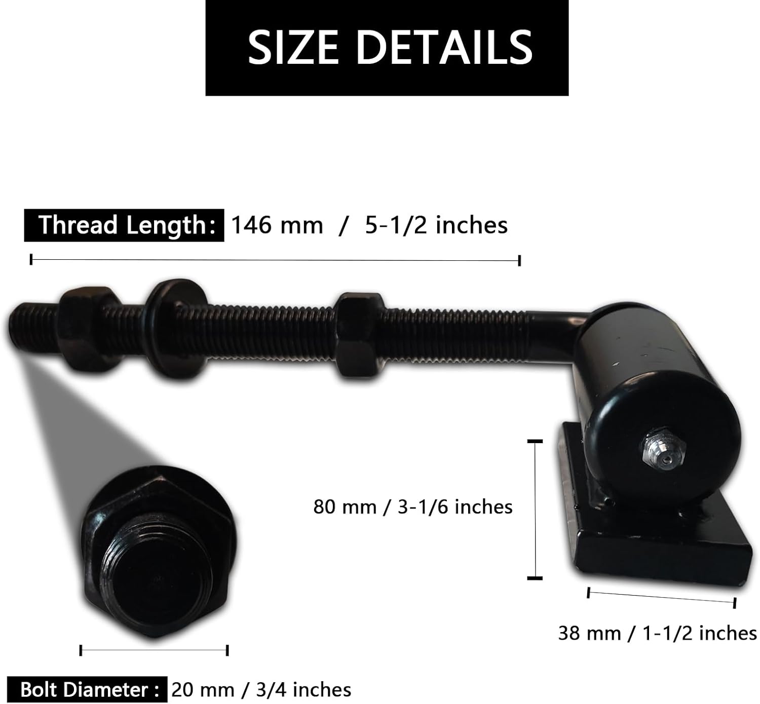 "️️️J-Bolt Hinge J-Bolt pivot hinge is a very heavy duty hinge specially made for heavy gates and doors. This hinge will swing a full Circle if installed without a stop. Hinge is made up of Steel on Female side with grease fitting and plate to weld to Steel post. J-Bolt Adjustable Barrel hinges provide full range of swing for gates and doors. ️️️Made of high quality steel with a black powder coating. The threaded arm allows you to easily adjust the distance between gate and post. Each pair of J-bolt hinges can hold up to 600 lbs, making them an excellent choice for driveways and security gates. ️️️Installation️️️:Instructions Weld the flat backing plate to the mounting post. If not already available, drill a hole through the gate frame big enough for the threaded bolt. Pass the bolt through, and secure with nuts. Hinges must be mounted with the thread arm at the top. If mounted upside down, the gate will fall."
