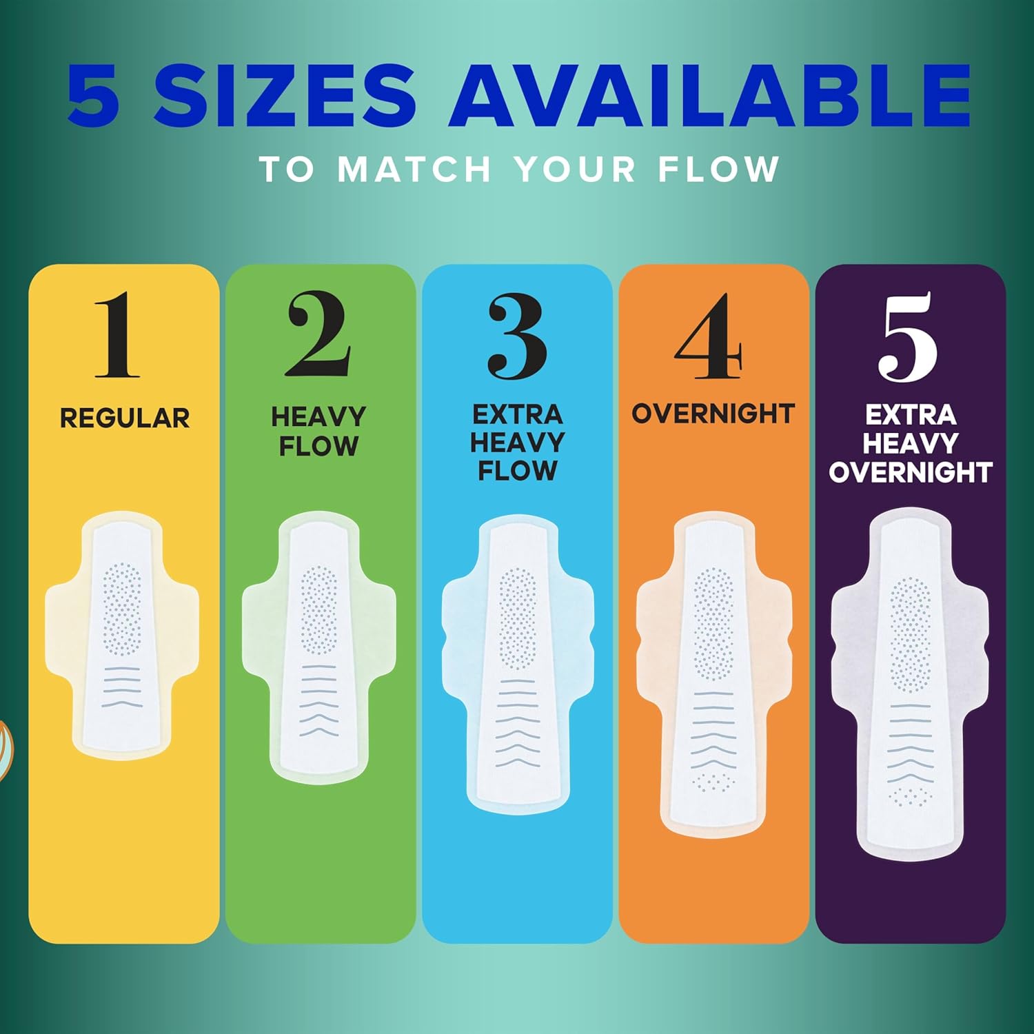 Always Pure Cotton with Flexfoam Period Pads (with wings) are designed with FlexFoam technology to provide up to zero leak and zero feel protection. These pads, made without fragrances, combine a premium cotton top layer with a breakthrough FlexFoam core for incredible period protection. With a cotton top layer, you can feel 8X drier* *than the leading cotton top layer pad brand, and a 50% larger back (vs. Pure Cotton Regular Absorbency) for night, making no-feel and no-fail protection possible! The thin, flexible design of Always Pure Cotton FlexFoam pads allows them to conform to your body, providing a secure fit. Equipped with wings, these pads stay in place for up to zero bunching as you move throughout your day, absorbing 10 times their weight, because they're made with foam not fluff. Always Pure Cotton with Flexfoam menstrual pads have been dermatologically tested, and approved as skin-friendly by the Skin Health Alliance, an independent organization led by dermatologists and scientists. The qualification process includes an assessment of the ingredients, and clinical trial data. Always FlexFoam products have been endorsed by the SHA for several years and we will continue working with professionals to ensure our products meet high external standards. If you are unsure which size is right for you, Always offers multiple sizes of Always Pure Cotton Flexfoam pads, allowing you to find protection that fits your needs for day and night.