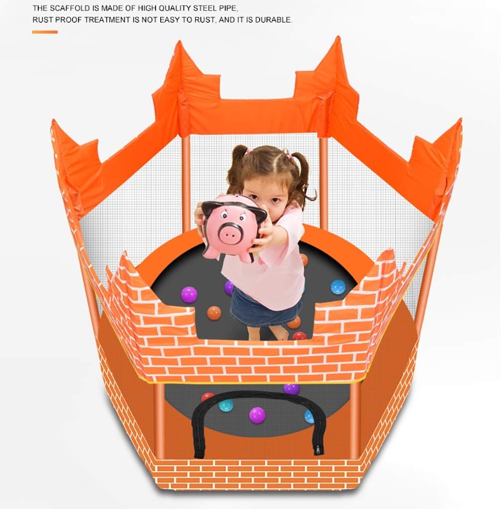 ? Product parameters: ★ Name: Children's trampoline castle ★ Load bearing: 150kg ★ Steel pipe material: galvanized steel pipe ★ Surrounding material: Oxford cloth ★ Jump cloth material: PP jump cloth ★ Net height: 100cm / 39.3inch ★ Floor area: 150x150cm / 59x59inch ★ Ground height: 30CM / 11.8inch ★ Pac: 83X60X20CM (32.6x23.6x7.8inch) ★ Number of springs: 36 ? Tips: ? The above dimensions are all manual measurements.Due to the curvature of the product, it is normal for 1~2cm error. ? Due to factors such as light, camera equipment, and monitor differences, there may be a slight color difference.Please understand! ※ Welcome to our shop!There are many styles in our shop, you can go to the shop to browse.