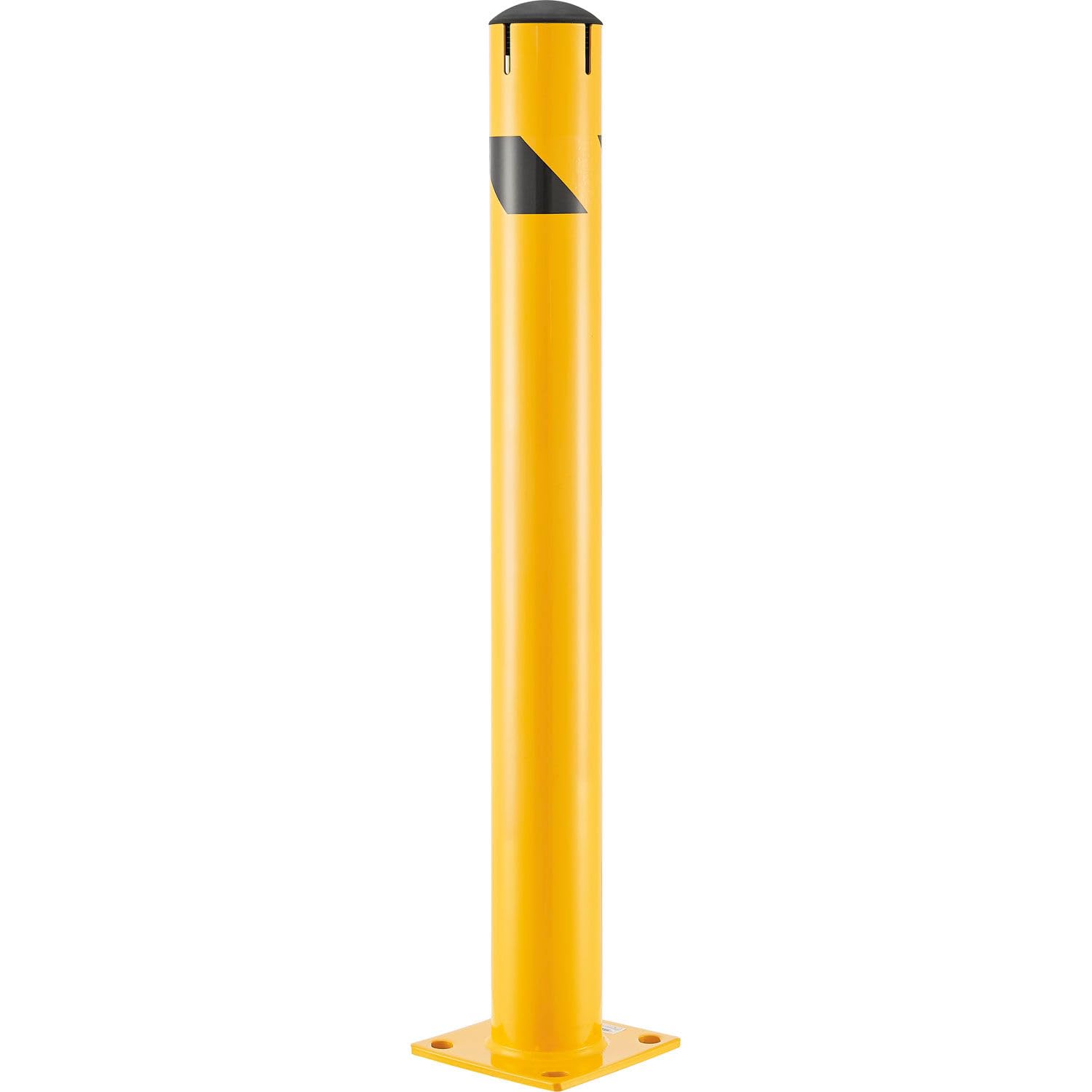 Provide equipment protection and designate where industrial vehicles cannot enter with the Global Industrial Steel Bollard with Chain Slots & Removable Cap. This bollard is ideal for protecting doorways, corners, and industrial equipment. All welded steel construction. Safety yellow powder coat finish provides strong visibility., Lot of 1