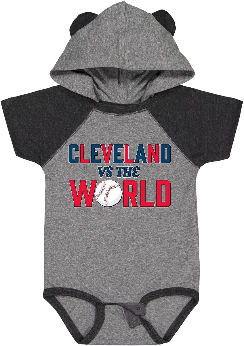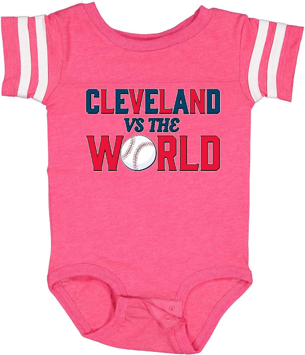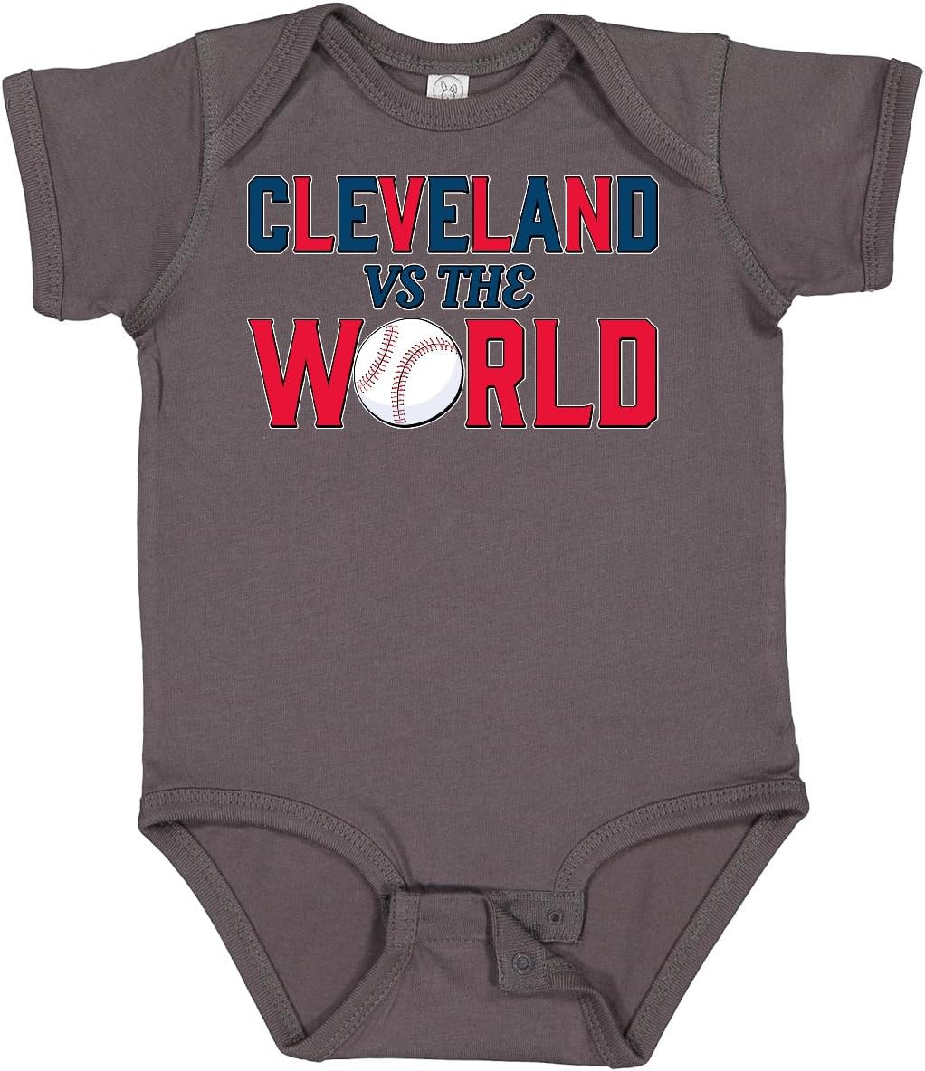 When the whole world is doubtful, we prove them wrong. Cleveland Vs. the World blue and red with baseball Baby Bodysuit, perfect for Cleveland fans!