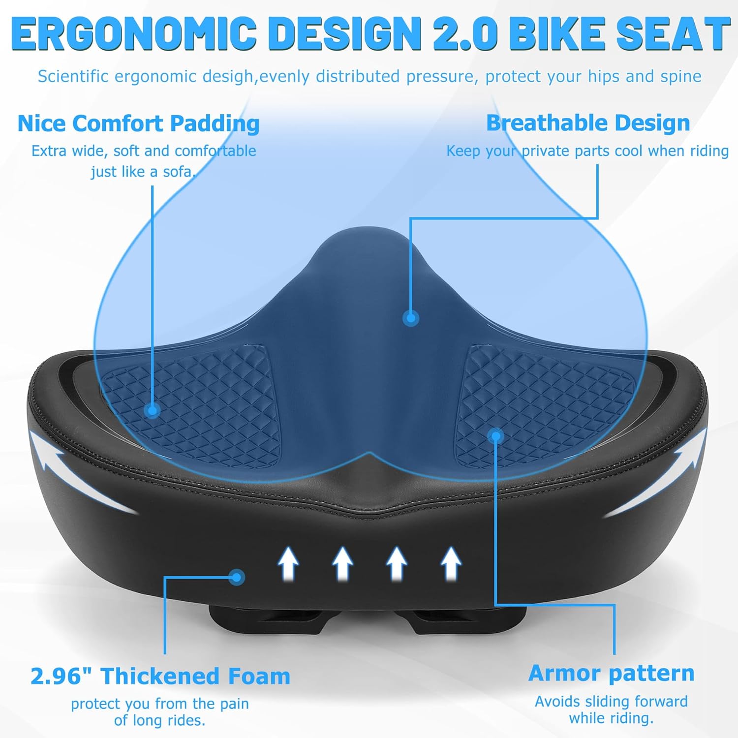 The latest upgrade oversized comfortable bike seatHave you ever given up riding because of seat pain? Are you still struggling to get a comfortable bike seat?Our newly designed bicycle seat will perfectly solve these difficulties for youSpecification:Color: black/red/blackSize: 12 * 13 * 5.5 inches(L x W x H)Filling Material: highly elastic high-density perforating foamSurface Material: Premium wear-resistant, scratch-resistant, Waterproof leatherBase Support: High-elastic steel bow & double rubber spring ballPackage Includes:1 * Oversized Comfort Bike Seat1 * Universal Adapter1 * Installation Tools1 * Reflective Armbands