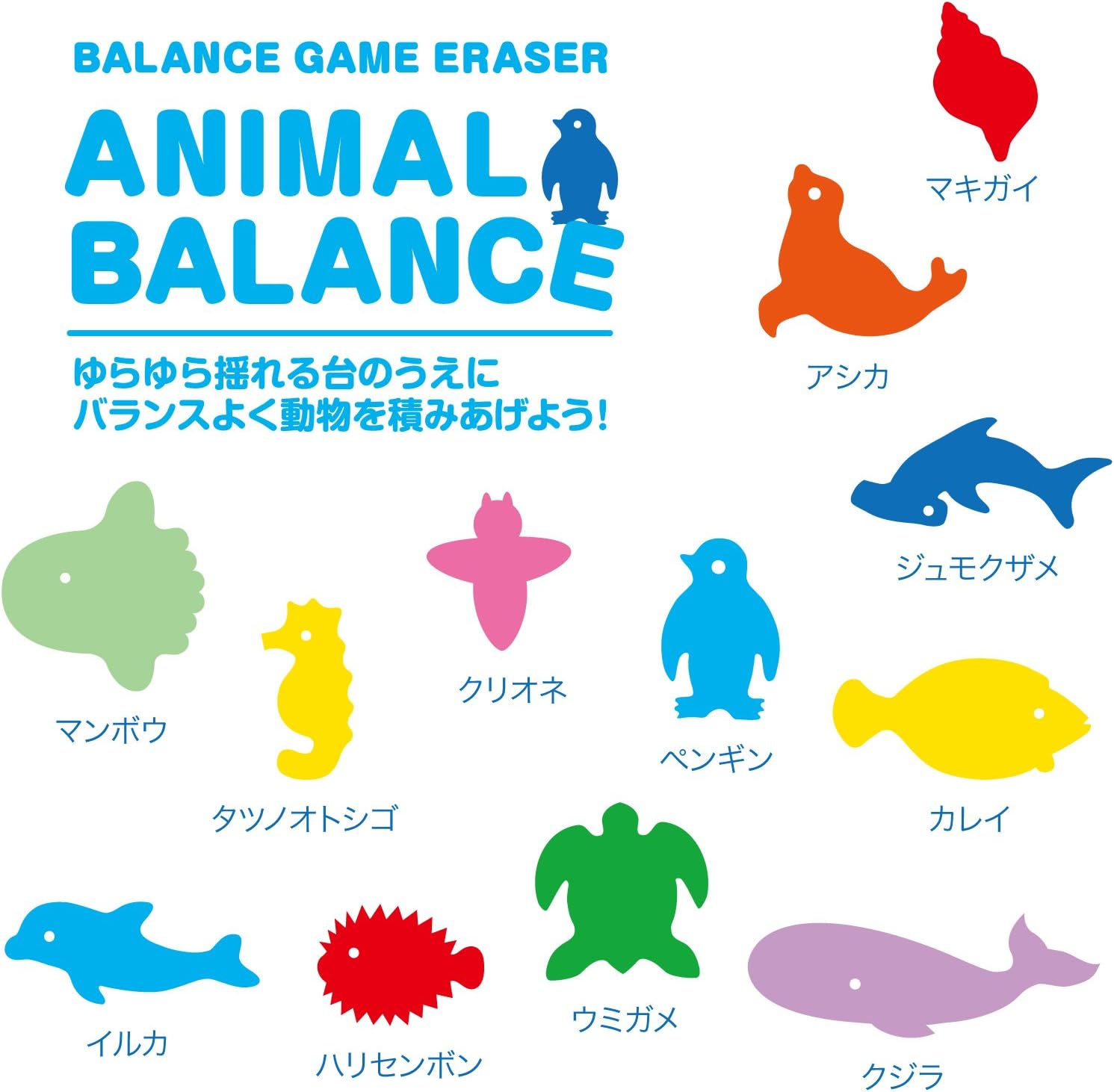 Use your Atama and Fingers to build up in balance with these colorful and cute erasers.