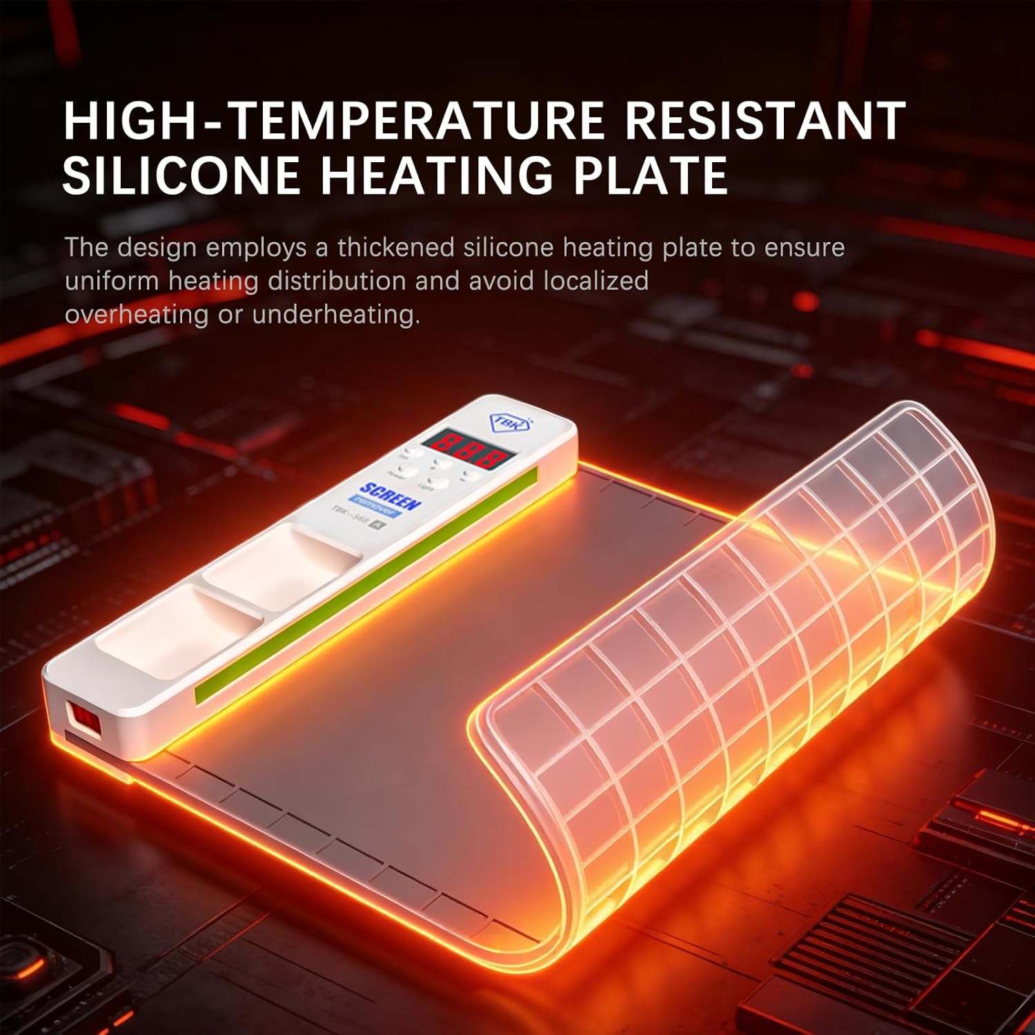 Professional Heating Pad for Electronics Repair The TBK568A heat pad is designed for electronics repair, making it ideal for cell phone repair tools, tablet repair, and laptop maintenance. This versatile phone heating pad evenly heats adhesive for safe screen removal without damaging internal components. LCD Screen Separator Machine Repair Tools Heat Plate Q: Does it work for tablet and laptop repairs? A: L385 × W250MM(15.16*9.84INCH)Large size suitable for repairing tablets and laptops Q: How long does it take to heat up? A: It takes approximately 1 minute and 50 seconds to heat up to 80°C (176°F) Q: Is the heating surface non-stick? A: Non-stick both before and after heating